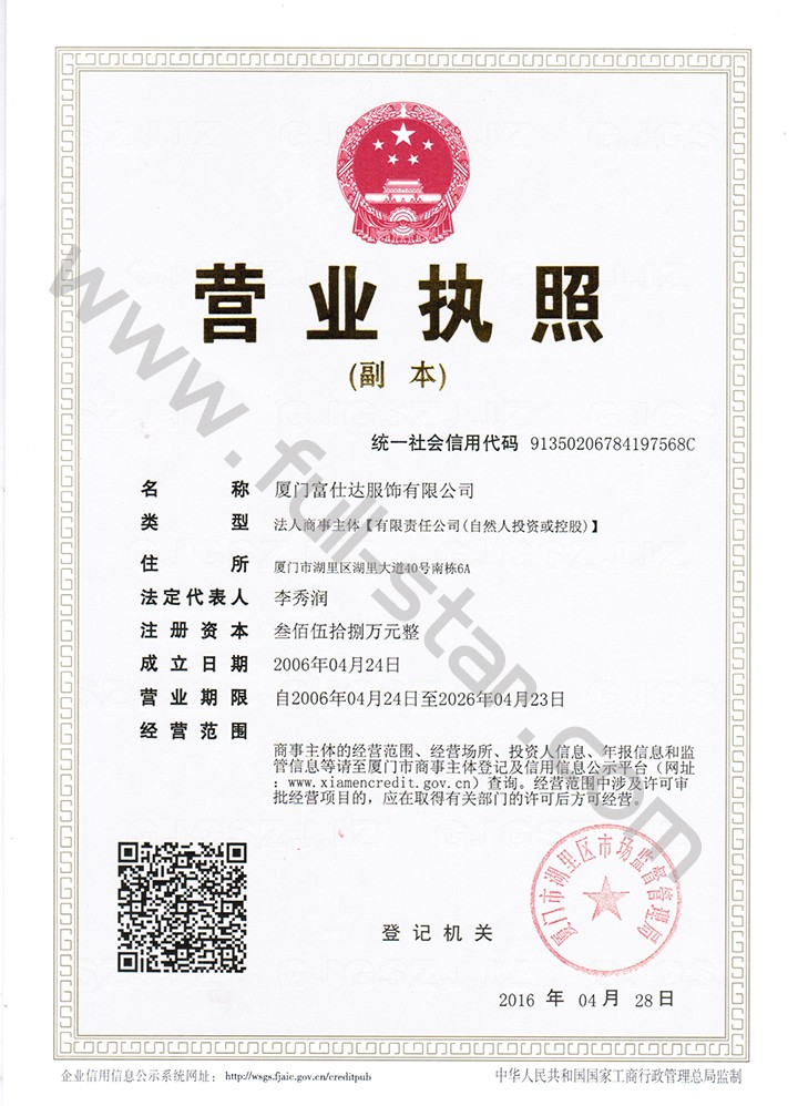公司1986年在美麗的海濱城市廈門成立,乘著特區經濟發展的東風,公司規模逐年壯大,目前已經成為閩東南地區較具影響力的制服專業供應商之一,現擁有服裝加工廠及制服生產車間四個,車間配備高速電車、三線機、五線機、扣眼機、壓襯機等各種款式的進口專用機臺300余臺。常年從事生產的一線工人近200多人,廠房面積2000多平方米,完全具備承接如酒店、餐廳、超市、保安等各類型團體制服和工作服的實力。2001年,公司申請了專業的制服商標:鷺仕、優尼坊。時至今日,鷺仕和優尼坊已成為閩南制服界的一面旗幟,在引領本地制服業走向國際化的路上越走越強。